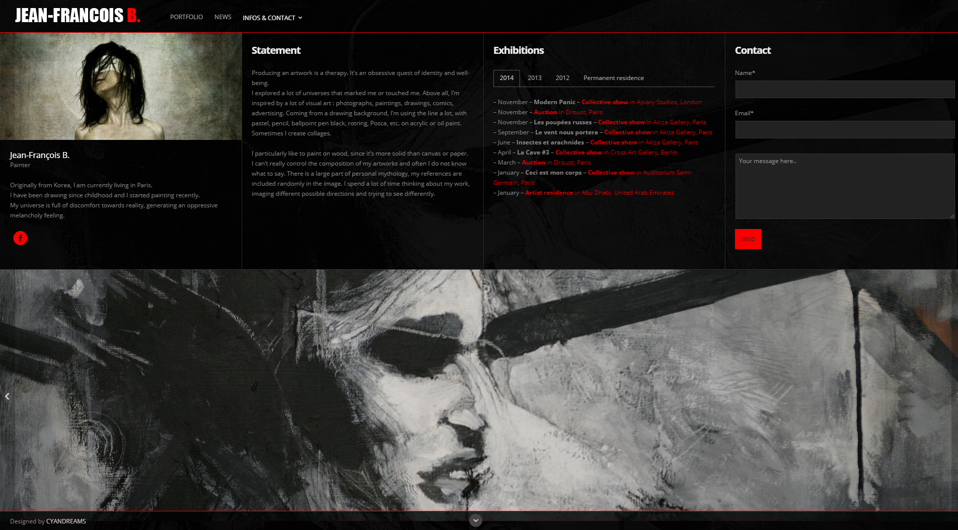 As an artist myself, I quickly realized the importance to have a great website. More than a page to display your work, it’s an extension of your personal universe. Of course, you also needed something functional and elegant. I learnt how to create cool, cheap, websites for small brands, businesses and artists and I would love to help you work on your project !